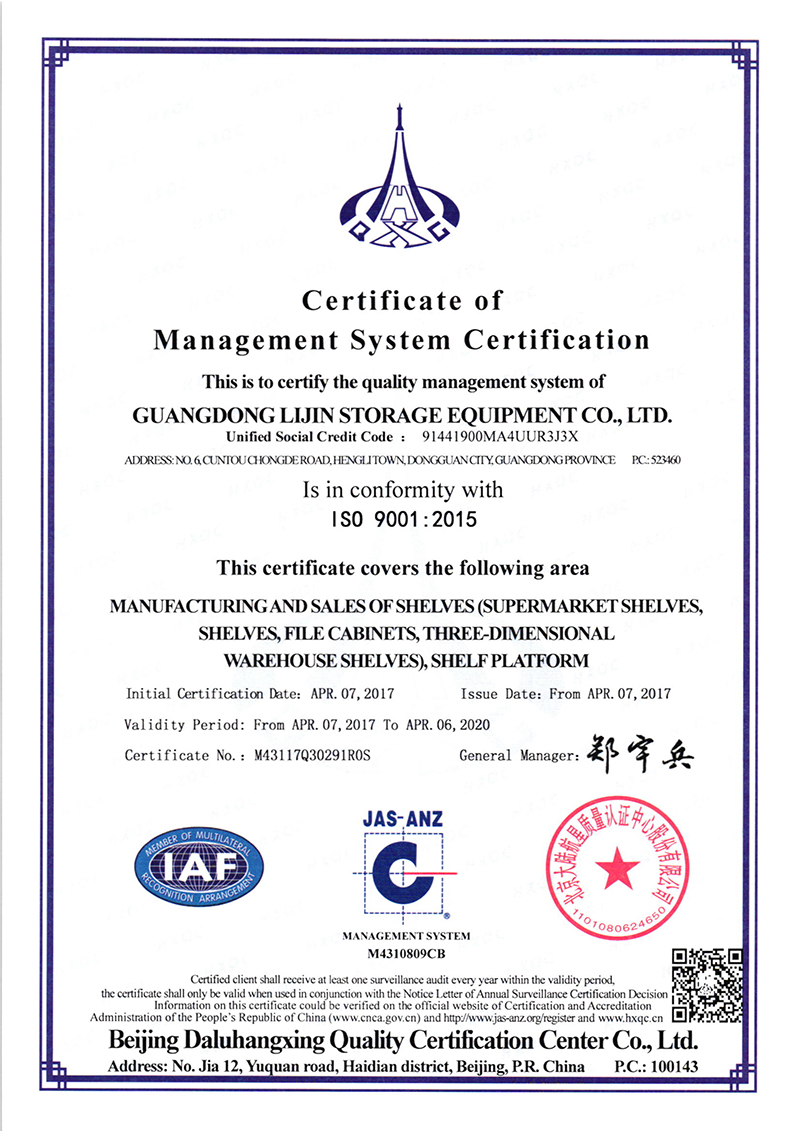 Dgongguan LIJIN dtorage equipment co.,Ltd. is specialized in warehousing shelves and storage equipment, research and development, production, sales, installation in one of the integrated enterprise. Company strength, reputation, with advanced production equipment, cutting-edge production technology and perfect after-sales service, to meet customer demand for different design. Our main products are: light shelves, shelves, heavy shelves, shelf platform, loft style shelves, cantilevered shelves, shelf, shelves, mobile cabinets, fluent (drawer type) mold frame, 4S rack, storage cage, workbench, tool cabinets, tool cart, parts cabinet, logistics trolley and the surrounding equipment. Force has nearly thousands of Chinese and foreign enterprises, including a large number of the world's top 500 enterprises, to provide first-class quality goods and related services of domestic listed companies and the industry leading enterprises